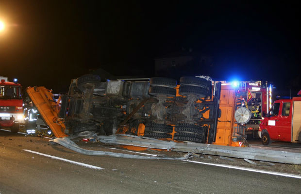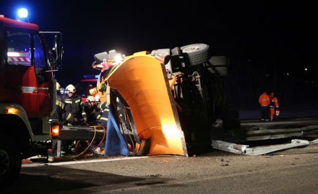 Nesreća se dogodila jutros oko 3 sata na dionici između čvorišta Kikovica i Čavle, nedaleko od benzinske crpke. Ralica Hrvatskih cesta se prevrnula i naslonila na ogradu između prometnih traka.