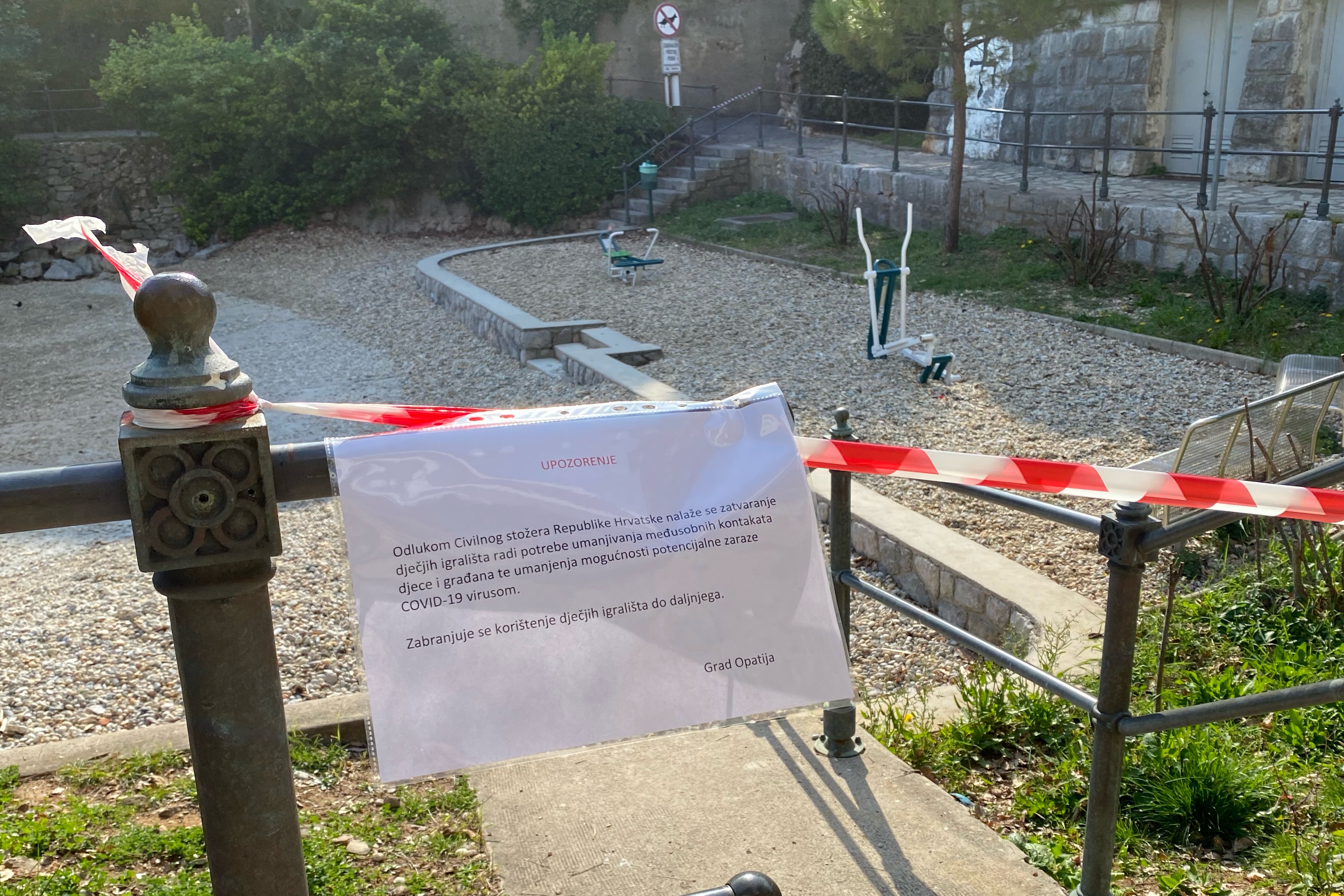 Stožer civilne zaštite Republike Hrvatske naložio je da se sva dječja igrališta na području države moraju ograditi i zatvoriti, čime bi se onemogućio međusobni bliski kontakt djece na igralištima, a vezano za preporuke o nužnom razmaku između dvije osobe.