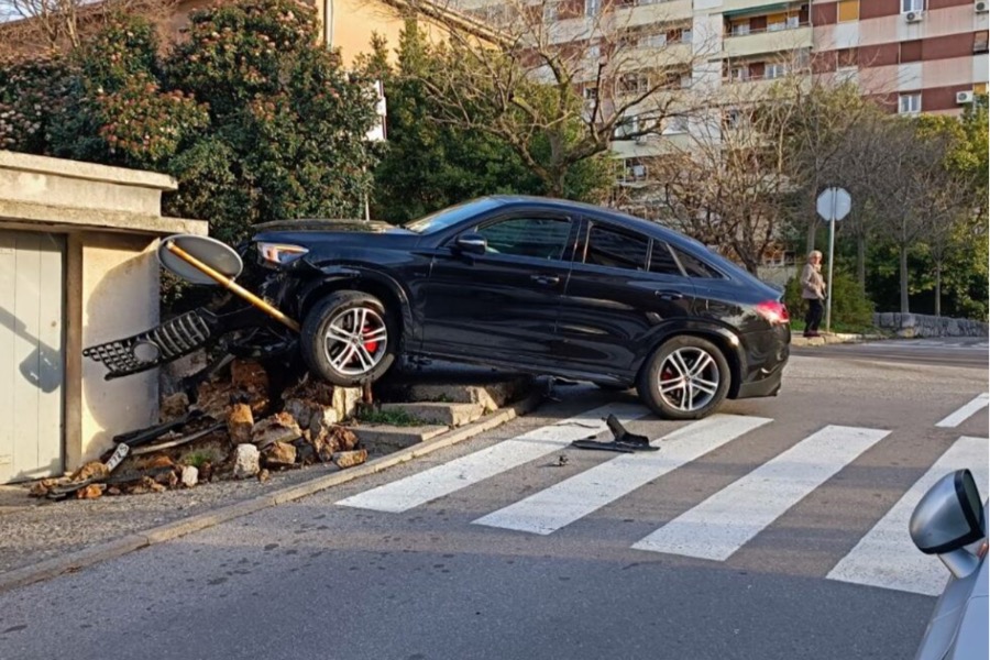 Uslijed sudara došlo je do rotiranja te je Mercedes prednjim dijelom udario u zid i u prometni znak.