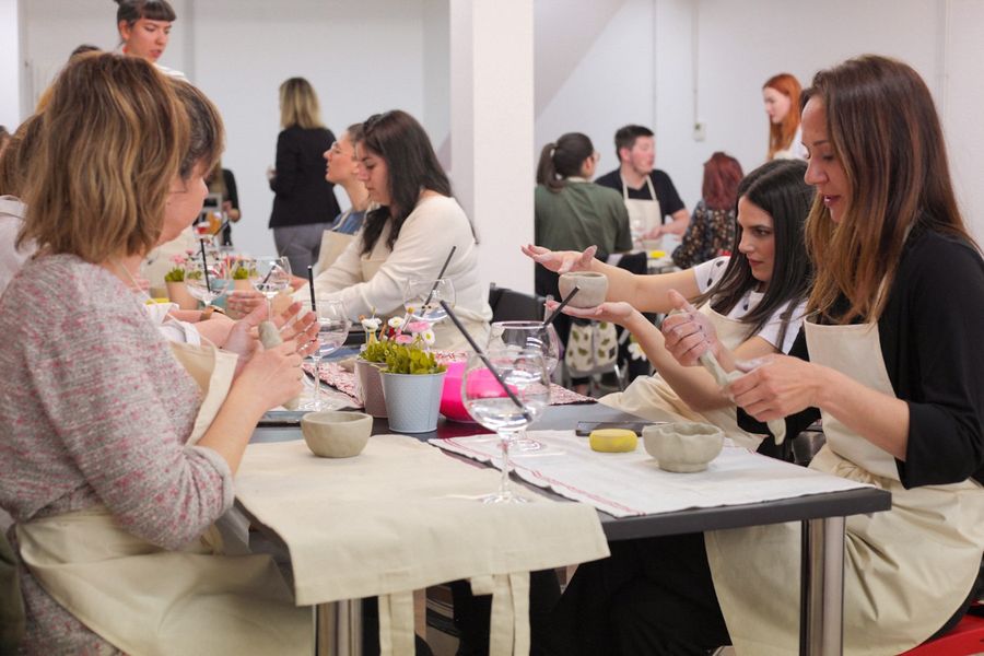 Radionice su nešto čime smo se odnedavno počele baviti. Na naše veliko iznenađenje, svaku smo popunile u rekordnom roku. Na našim radionicama se, uz izradu predmeta, pijucka i gricka nešto fino, sluša se glazba i atmosfera bude zaista opuštena i vesela. Ljudi su jako zadovoljni, pogotovo kada nakon radionice vide svoje radove. Vjerujemo da se vidi koliko volimo to što radimo i da tu energiju želimo i nastojimo prenijeti na druge. Većina polaznika se iznenadi kada shvate koliko je proces izrade keramike zapravo kompleksan.