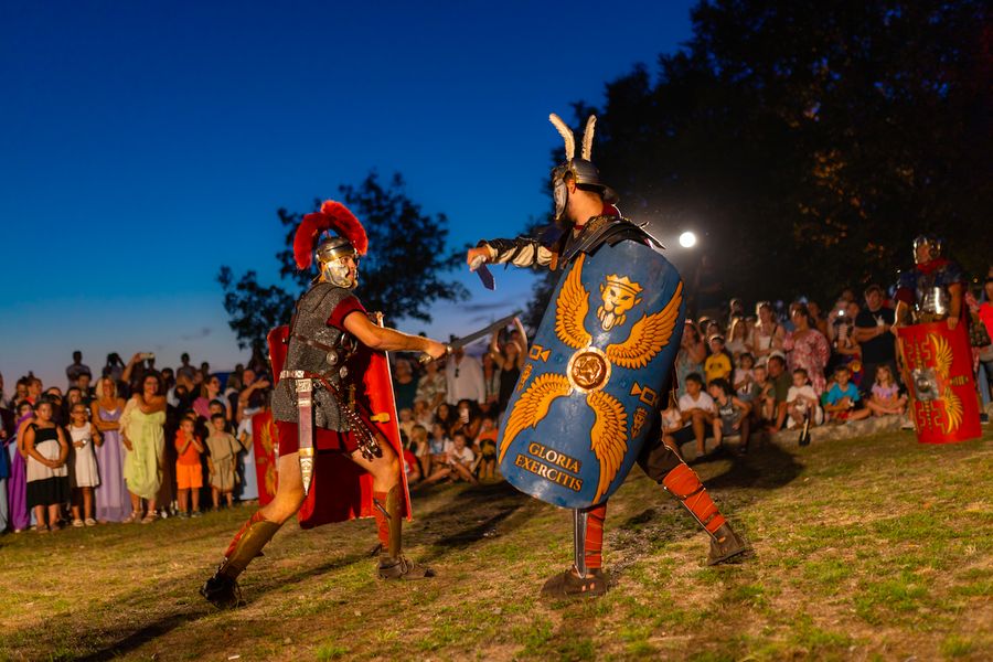 Najmlađi su uživali u kreativnim radionicama, zaboravljenim antičkim igrama, drvenom vrtuljku i izradi prepoznatljivih frizura iz rimskog doba. Poseban doživljaj bila je degustacija antičkog menija u režiji restorana Rivica, s autentičnim delicijama poput kozica s medom, janjeće koljenice i dimljenih srdela. Program je uključivao i kostimirana uprizorenja u izvedbi legije Flavia Felix pod vodstvom Centuriona Ercusa Slaviusa Maximusa. Prikazane su karakteristične formacije rimske vojske, kao što su testudo, orbiculus i muro. Posjetitelji su također mogli uživati u demonstracijama borbi, plesnim nastupima, prikazu antičkih zanata te performansima s vatrom.