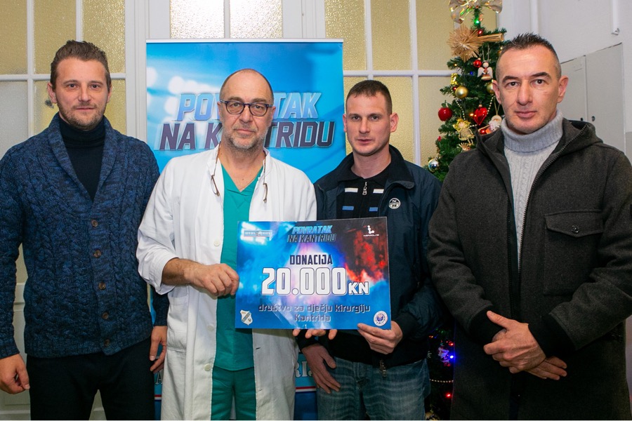 Posljednja aktivnost ovogodišnjeg izdanja Povratka na Kantridu zaključena je humanitarnom gestom tek nešto dalje od kultnog stadiona. Naime, jučer je Dječjoj bolnici Kantrida Društvu dječje kirurgije uručen ček s iznosom od 20 000 kn. Donacija je to Kluba navijača Armada, a prihod od ulaznica prodanih za nogometni spektakl „Povratak na Kantridu“ zasigurno je pristigao u prave ruke. Donaciju su uručili predsjednik Kluba navijača Dejan Božić i tajnik Kluba navijača Armada Tomislav Blagaić te Vedran Babić u ime organizatora, a donacija je simbolično predana na dan Sv. Nikole – zaštitnika djece.