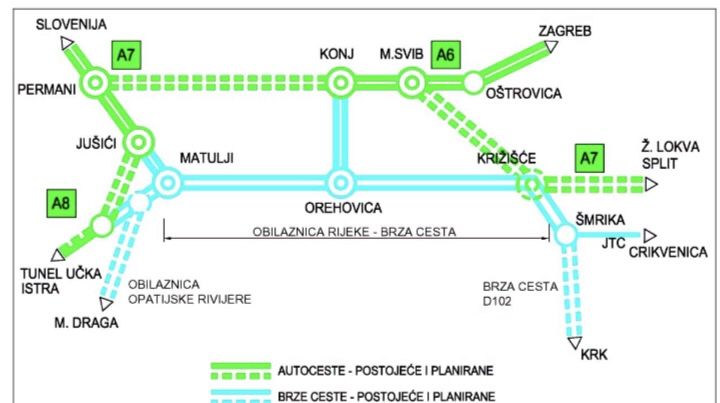 “Cesta s najvećim prometom u državi, koja odavno nije zaobilaznica nego tranzitna cesta koja prolazi kroz grad. Izgradnjom čvora Kozala i rekonstrukcijom čvora Orehovica sadašnja riječka zaobilaznica treba postati brza gradska prometnica. Uz čvorove Draga i Škurinje i spojeve na ceste D 404 i D 403, i postojeće čvorove Zamet, Bakar, Čavle, Rujevica, Matulji i Trinajstići ta prometnica ne zaobilazi grad već ga integrira i povezuje.