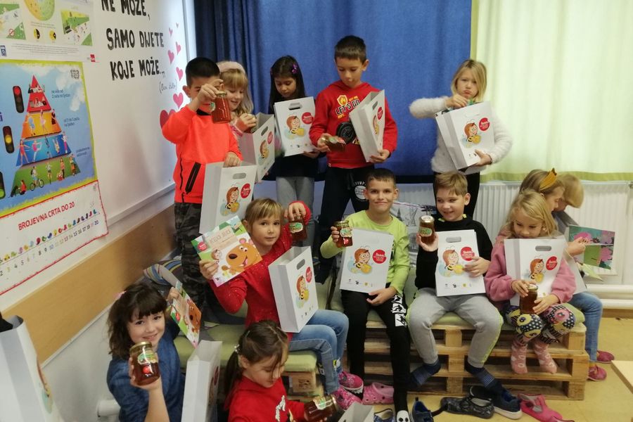 Svaki učenik dobio je na dar vrećicu u kojoj se nalazi slikovnica “Pčelica Jelica i medo Edo” i Nacionalna staklenka meda koja nosi oznaku proizvođača te oznaku “Med hrvatskih pčelinjaka”.