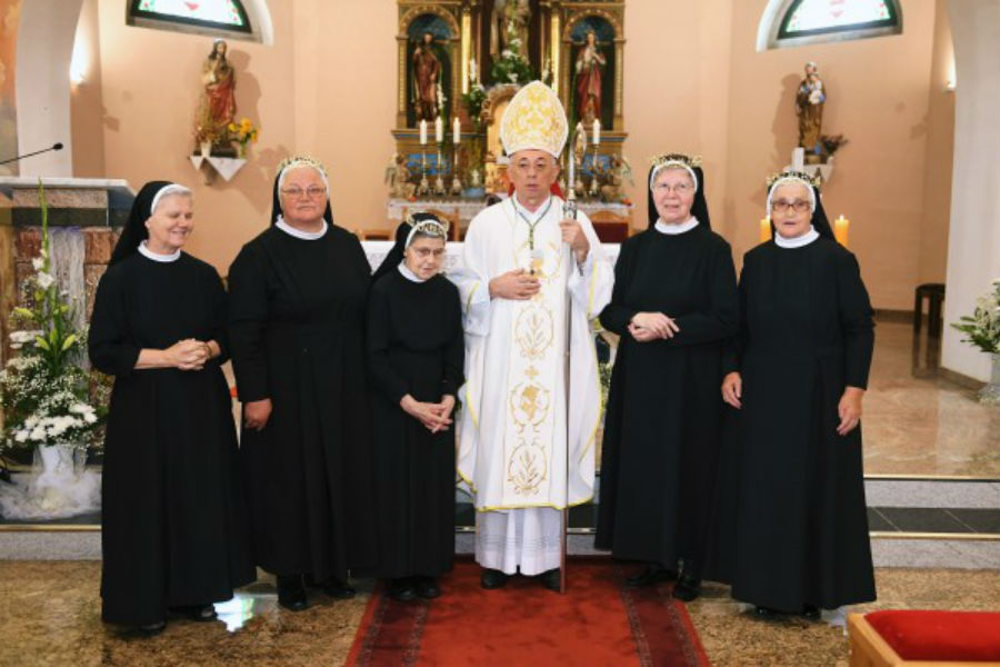 Lijepo je i dostojno slaviti prve zavjete, ali još ljepše i dostojnije zlatne i dijamantne, što mi upravo sada činimo. Slavljenje prvih zavjeta možemo usporediti s radošću sijača zbog sjetve, a slavljenje zlatnih i dijamantnih sa žetvenom radošću, kazao je na početku propovijedi nadbiskup. Dodao je da prva radost izvire iz nade da će posijano sjeme uroditi plodom, a druga iz plodova sjetve koja je pomućena nesigurnošću, jer nikad ne znamo hoćemo li žeti u suzama ili u radosti. “Vi se pak, drage jubilarke, i mi svi skupa s vama, danas radujemo radošću koja ispunja žeteoce kad im dobro urodi ono što su posijali, dakle radošću koja nije zamućena strahom od budućnosti.”