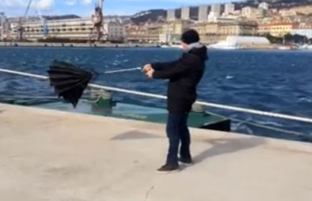 Dokazana neuništivost riječkog kišobrana na olujnoj buri (VIDEO)