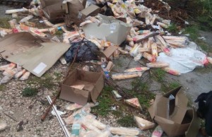 Na Trsatu u blizini nekadašnjeg kluba Tenk već neko vrijeme se nalazi veći broj odbačenih sendviča “Montana”, njih zasigurno preko stotinu.