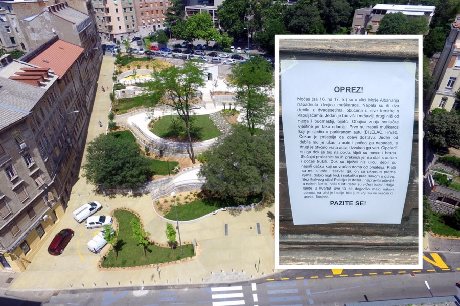 U parku Pomerio u središtu Rijeke pojavila se upozoravajuća obavijest građana koja opisuje navodne uznemirujuće događaje iz noći s 16. na 17. svibnja, a obavijest se proširila i na društvenim mrežama. Naime, u ulici Moše Albaharija, u neposrednoj blizini parka, dogodila su se dva nasilna napada, a napadači su, prema svemu sudeći, još uvijek na slobodi.