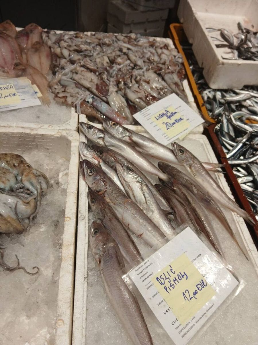 Kupaca ne nedostaje, a ponuda je i ove godine iznimno bogata. Na ledu se sjaje primjerci jadranske ribe i morskih plodova, svjedočeći o raznolikosti i bogatstvu Kvarnera. Oslić i pišmolji nude se po cijeni od 10 do 12 eura za kilogram, koliko stoje i muzgavci, često birani za lagane, ali ukusne blagdanske obroke. Ljubitelji glavonožaca posežu za lignjama i hobotnicom, čija se cijena kreće oko 20 eura po kilogramu.