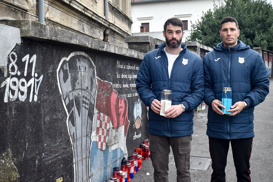 Povodom Dana sjećanja na žrtve Domovinskog rata te na žrtvu Vukovara i Škabrnje, nogometaši HNK Rijeka – Damir Kreilach i Mile Škorić – odali su počast svim žrtvama zapalivši svijeće kod grafita posvećenog Gradu heroju, smještenog u Vukovarskoj ulici u Rijeci.