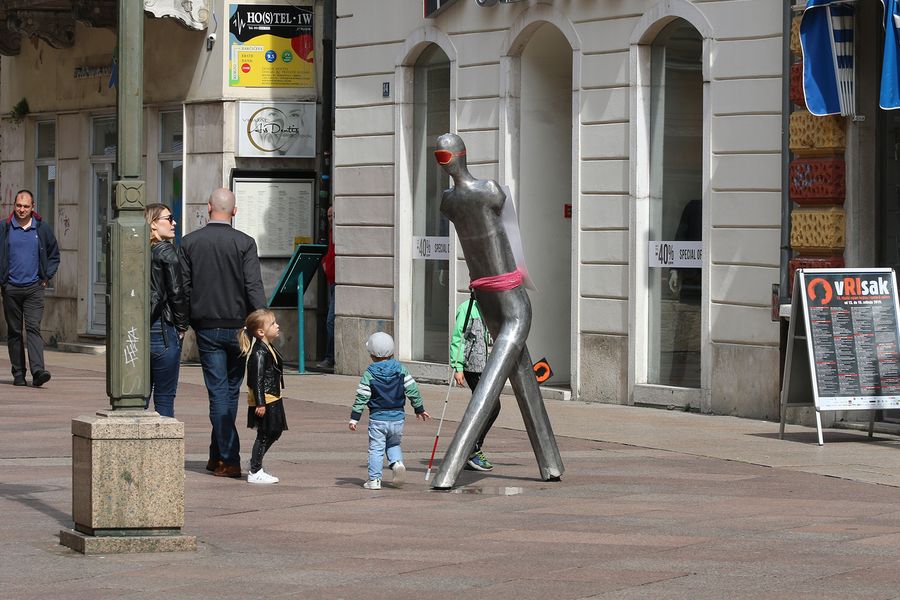 Građani su se uz pomoć dizalice Javne vatrogasne postrojbe Grada Rijeke mogli izbliza susresti s orlom na riječkoj uri kojem je preko očiju jedne glave stavljen povez, a na drugu glavu slušalice, simbol slijepoće te važan alat u učenju i razvoju slijepe djece. U akciji koju su organizirali Odjel za djecu oštećena vida i Prva dječja knjižnica za djecu oštećena vida pri OŠ Pećine, uz orla, riječki je „Hodač“ također dobio povez, ali i bijeli štap, neizbježno pomagalo svim osobama s poteškoćama u vidu.