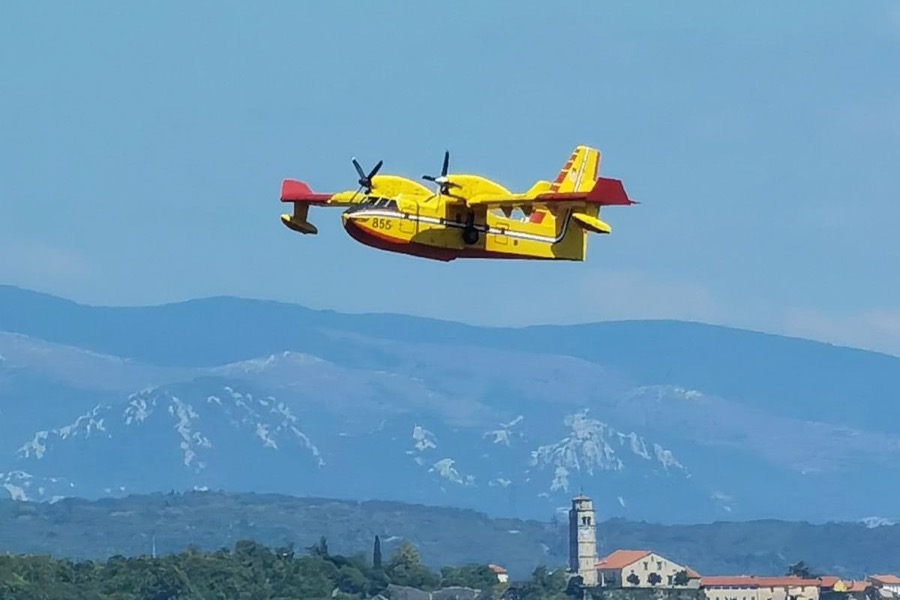 Kanader se puni vodom u Riječkom zaljevu za požar kod Buzeta