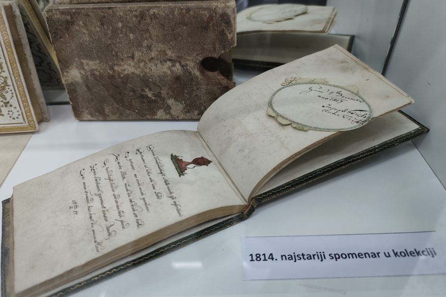 Supružnici Novaković ponosno ističu kako u zbirci imaju nekoliko spomenara iz 19. stoljeća, te kako su neki od primjeraka iz njihove kolekcije preživjeli tri rata. Od impresivnog broja od ukupno 900 spomenara s kojima raspolažu u svojoj kolekciji, na izložbi je izložen 81 spomenar, najstariji je iz 1814., a najmlađi iz 2020. godine. Ovdje se mogu pronaći i upisi i crteži nekih poznatih osoba, među kojima bi istaknuli onaj slikara Iva Kaline.