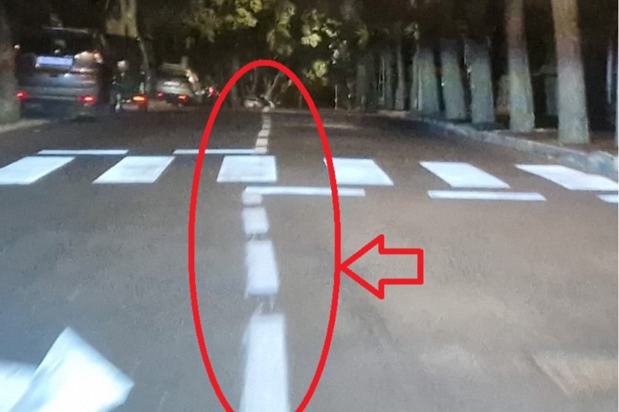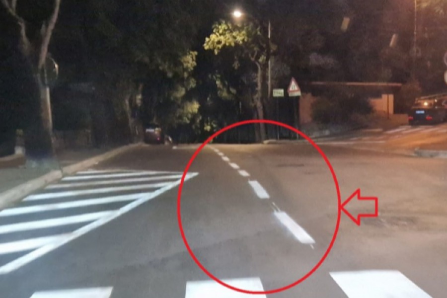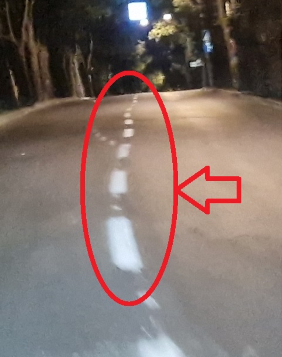 Tom prilikom, razdjelna isprekidana linija na kolniku iscrtana je tako loše i krivudavo da izgleda kao da je netko te linije crtio valjkom iz osobnog auta, a ne specijaliziranim vozilom namijenjenim za izvršenje istih.