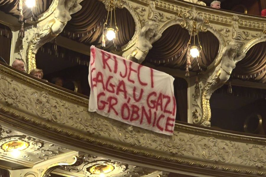 Zamaskirani prosvjednici upadaju nezakonito u riječko kazalište. Lupaju, zvižde, prekidaju kazališnu predstavu jer je jedan koreograf predstave Židov. Ovi mladi komunistički ekstremisti toliko mrze Židove da im je nebitno da je i ovaj Židov ustvari ljevičarski Židov iz Kibuca inače donator i promotor Palestine. Ništa to nije važno zamaskiranim prosvjednicima i podupirateljima islamističkih terorista Hamasa, kao što barbarima Hamasa nije bilo važno da su ta djeca ustvari “djeca cvijeća” iz lijevih Kibuca dok su im rezali glave mačetama i silovali nevine Izraelke jer im je u njihovom programu i vjerovanju slijepe mržnje cilj potpuno uništenje Izraela nakon čega ćemo i mi svi ostali doći na red.