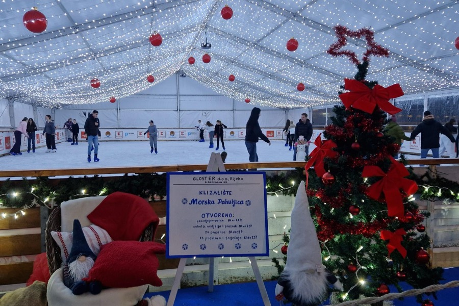 Na Gatu Karoline Riječke i ove je godine podignuto Klizalište Morska pahuljica, a u klizanju na samoj obali mora moći će se uživati sve do 6. siječnja 2025. godine.