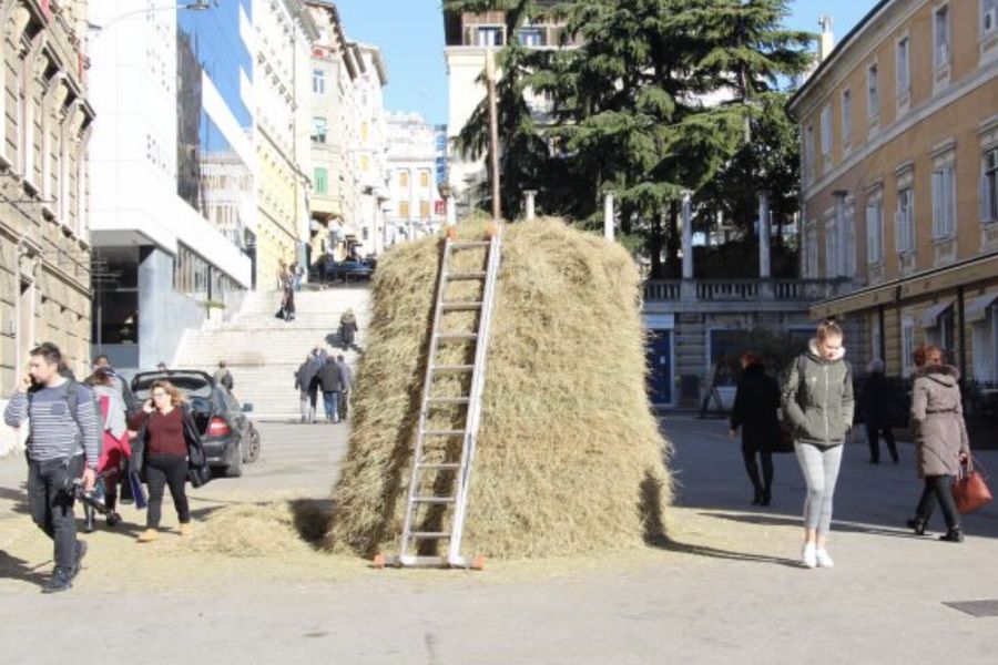 Na riječkom Trgu 128. brigade Hrvatske vojske u četvrtak 30.siječnja ponovno je postavljena instalacija ‘Stog sijena’ Ivana Kožarića.
