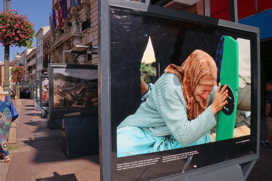 U organizaciji Udruge mladih Bošnjaka i prijatelja grada Rijeke i PGŽ-a na postamentima na Korzu postavljena je izložba fotografija posvećena 28. obljetnici genocida u Srebrenici.