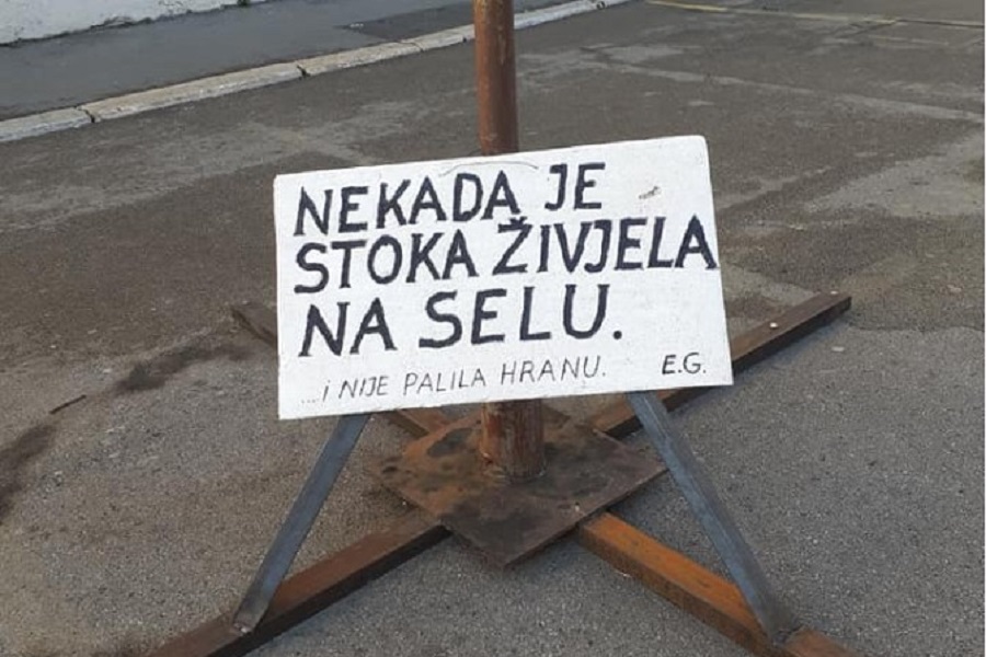 Danas je na Korzu, na mjestu gdje se nalazio Stog sijena, osvanula poruka na kojoj piše “Nekada je stoka živjela na selu…i nije palila hranu.” Na poruci su ostavljeni inicijali E.G.