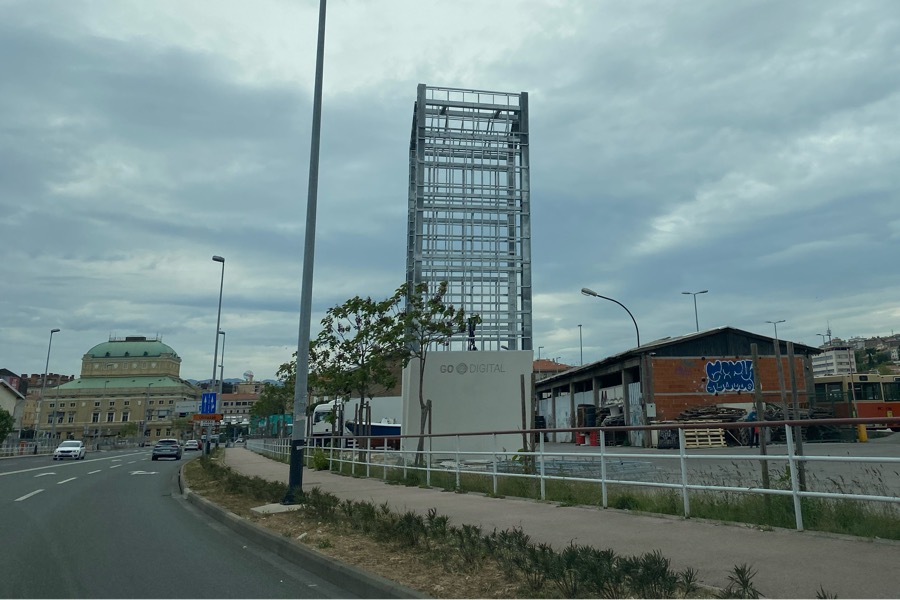 Radi se zapravo o novom oglašivačkom tornju tvrtke Go2Digital, do sada najvećoj takvoj površini u Rijeci te tvrtke, koja digitalne panoe već ima na tri lokacije u strogom centru grada, odnosno da budemo precizniji na Jadranskom trgu, Trgu 128. brigade Hrvatske vojske i u Starčevićevoj ulici. Tu je također i nekoliko digitalnih panoa u Tower centru.