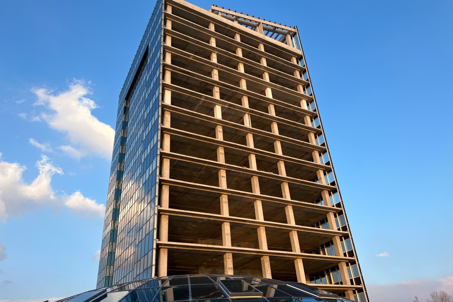 Ogoljeni poslovni toranj Tower centra na Pećinama posljednjih dana privlači brojne znatiželjne poglede. Novi izgled zgrade, koja svojom vizurom i veličinom dominira istočnim dijelom našega grada, mnogima je upao u oko, a posebno sada, kad je ovako bez stakla moguće vidjeti cijelu njezinu konstrukciju, piše Novi list.