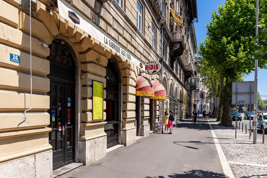 U užurbanoj Krešimirovoj ulici, u blizini prekrasne palače Šećerane, posebne Dječje kuće, u neposrednoj blizini željezničkog kolodvora smjestio se La Fabrique (prostor nekadašnjeg Me gusta restorana).