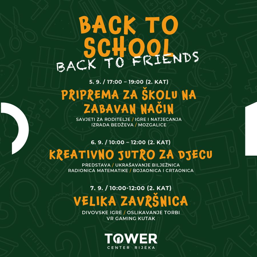 Škola kreće uskoro, a u Toweru vas čeka bogat program od 5. do 7. rujna te posebni popusti i akcije.