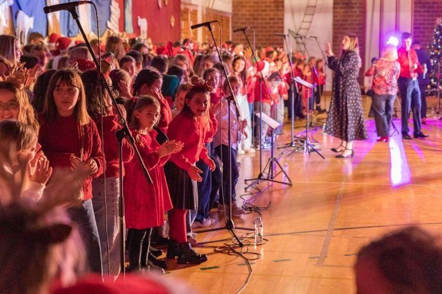 Dvoranom su se orile božićne pjesme “Ide Božić”, “Kyrie Eleison”, “Pristupite vjerni” i mnoge druge, a zborom učenika ravnalo je osmero učitelja Glazbene kulture i voditelja zborova: Željka Komlenac, Davor Burlović, Nariman Pavačić, Jurica Goja, Dana Bajčić, Kristina Ivošić, Ana Valković i Mara Vidučić Blečić, koji su, zajedno s djecom, otpjevali posljednju pjesmu “Božić dolazi”.