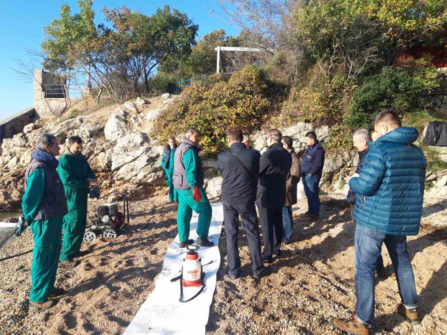 Nakon uklanjanja onečišćenja mora, kontinuirano se provodi sanacija onečišćenog obalnog područja. Na današnjem sastanku dogovoreno je kako će se prije zamjene šljunčanog materijala na plažama nastaviti s pranjem stijena, a tek potom pristupiti skidanju šljunka u sloju koji to bude zahtijevala razina onečišćenja i potom ga zamijeniti novim šljunkom iste kvalitete.