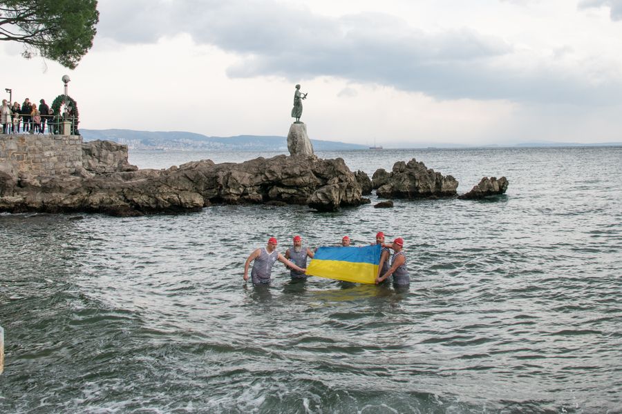 “Društvo Opatijski kukali su danas u podne uoči redovitog treninga zimskog kupanja na kupalištu Slatina u Opatiji odali podršku ukrajinskom narodu koji se hrabro bori protiv nametnute i brutalne agresije. Akciju su podržali brojni Opatijci i šetači koji su se tamo zatekli.