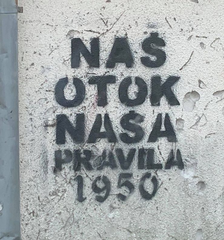 A na kraju i o pravilima – tu valjda mislite na ono jedno jedino opće prihvaćeno navijačko pravilo da se tuđi murali i grafiti ne šaraju? E to pravilo bi vam se moglo obiti o glavu…”, poručili su iz udruge Plavo bijeli otok.