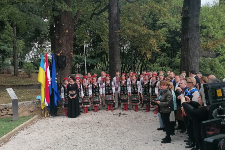 Spomen-obilježje su zajednički otkrili predsjednik Hrvatskog sabora Gordan Jandroković i predsjednik Vrhovne Rade Ukrajine Ruslan Stefančuk u lovranskom parku Komušćak.