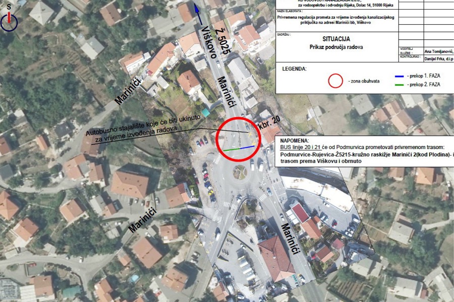 Autobusne linije 20 i 21, tijekom cijelog vremena izvođenja radova, prometovat će privremenom trasom: Podmurvice – Rujevica – Nova cesta – kružno raskrižje kod Plodina i dalje redovitom trasom prema Viškovu i obrnuto.