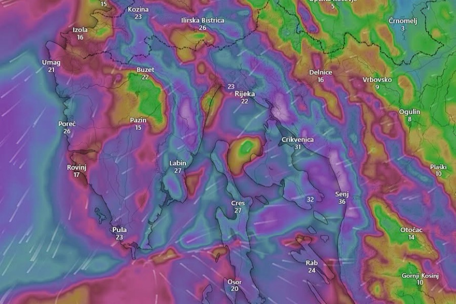 S prolaskom fronte očekuje se naglo okretanje vjetra na sjeverne smjerove pa će prolazno olujnog sjeveroistočnjaka biti i u Gorskom kotaru, a na Kvarneru će puhati jaka i olujna bura s orkanskim udarima.