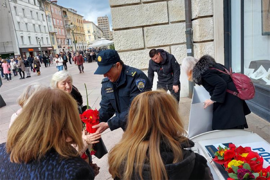 Čestitke i poklone ženama su uputili Denis Trojanović, policijski službenik za prevenciju I. policijske postaje Rijeka te Antonija Vrljić i Marina Ćubelić, policijske službenice Postaje pomorske policije Rijeka.