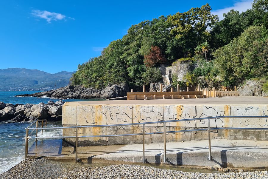 Postojeća rampa će se produžiti na način da se korisnicima omogući pristup u veću dubinu, a time olakša silazak i ulazak u more. U dijelu platoa sunčališta izvest će se povišena sunčališta i klupe, te će se u neposrednoj blizini izvesti svlačionica prilagođena osobama s invaliditetom.