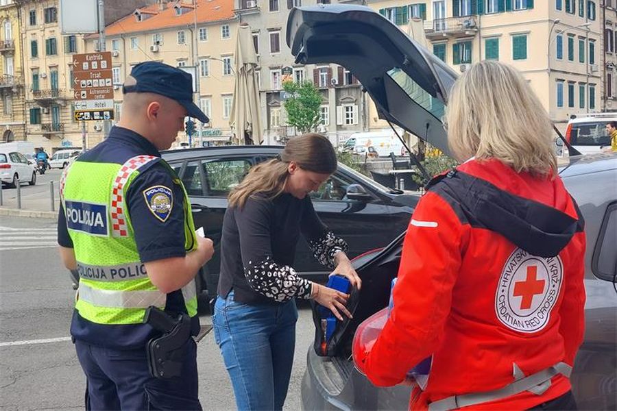 Riječka policija kontrolirala prvu pomoć u vozilima, Crveni križ darivao pakete kome je trebalo