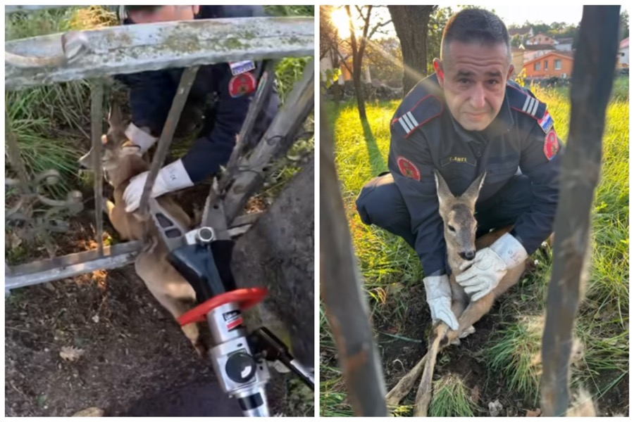 Javna vatrogasna postrojba Rijeka podijelila je s javnošću jednu nesvakidašnju, ali nadasve lijepu intervenciju. Tijekom pretrčavanja ceste malena srna nespretno je zapela u ogradi i nije se mogla sama osloboditi.
