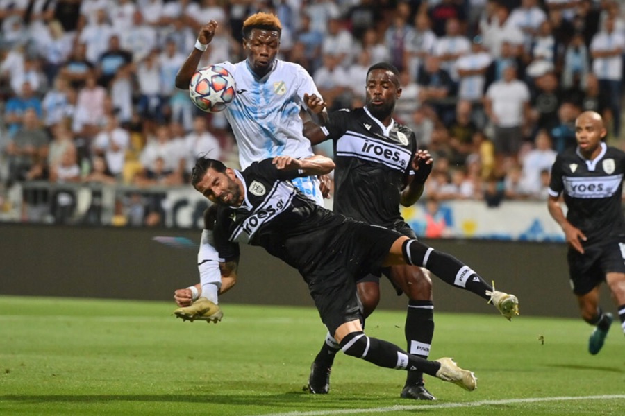 PAOK je odlično otvorio utakmicu i već na otvaranju unutar jedne minute (6′) dvaput pogodio okvir gola.