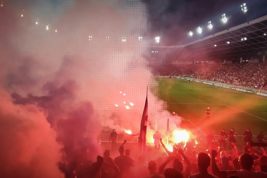 I za vrijeme nogometne utakmice došlo je do masovnog narušavanja javnog reda i mira i prekida na tribinama gostujućih navijača. Prema navodima policije, navijači su koristili jaču pirotehniku, bacali baklje na teren, lomili stolice, bacali ih na policiju i zapalili ih.