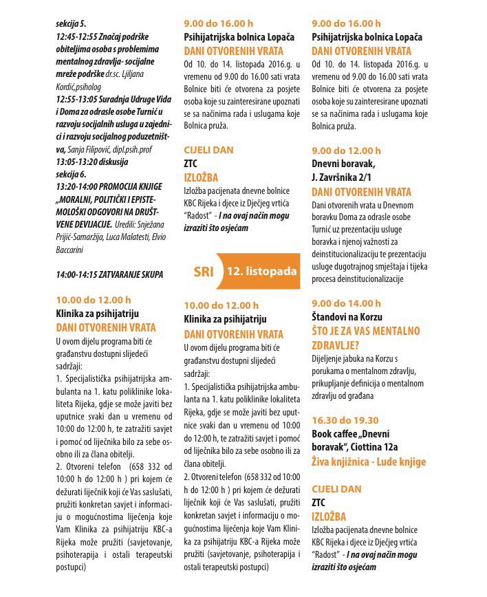 Festival se održava na raznim lokacijama diljem Rijeke kao što su ZTC, Gradska vijećnica, psihijatrijska bolnica Lopača itd. Raspored aktivnosti i događaja pogledajte u prilogu.