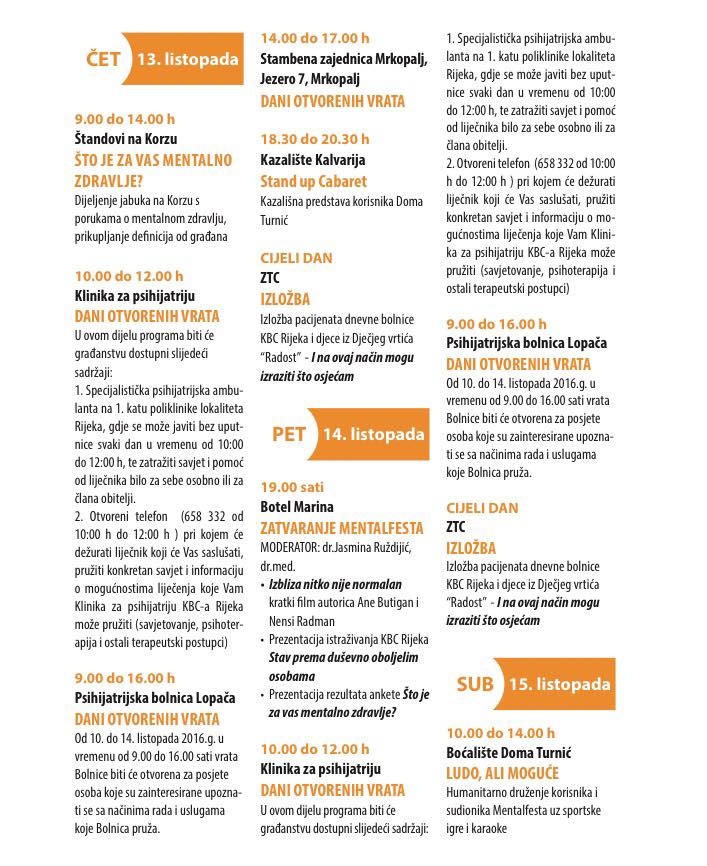 Od 10. do 15. listopada na području Rijeke i okolice održava se Festival mentalnog zdravlja – Mentalfest. Glavni organizator festivala je Dom za odrasle osobe Turnić.
