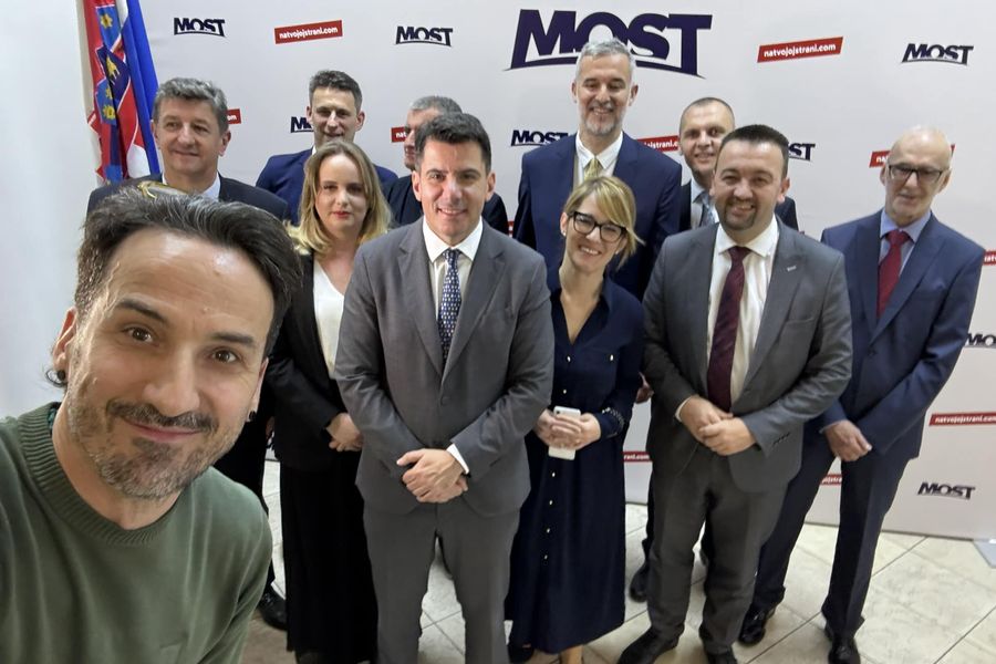 “Čast mi je i zadovoljstvo stajati uz bok ovim ljudima”, poručio predsjednik Mosta Božo Petrov okružen nositeljima lista za svih 11 izbornih jedinica u kojima izlaze u koaliciji s Hrvatskim suverenistima, Nezavisnom listom mladih i sestrinskom strankom u BiH – Hrvatskom republikanskom strankom.