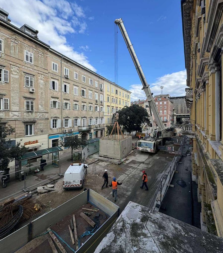 Adamićeva ulica u centru Rijeke zatvorena je za sav promet krajem siječnja zbog velikih radova koji bi se trebali izvoditi sve do kraja ljeta. Iz komunalnog društva Vodovod i kanalizacija Rijeka putem društvenih mreža podijelili su nekoliko fotografija najnovije “akcije” na gradilištu.