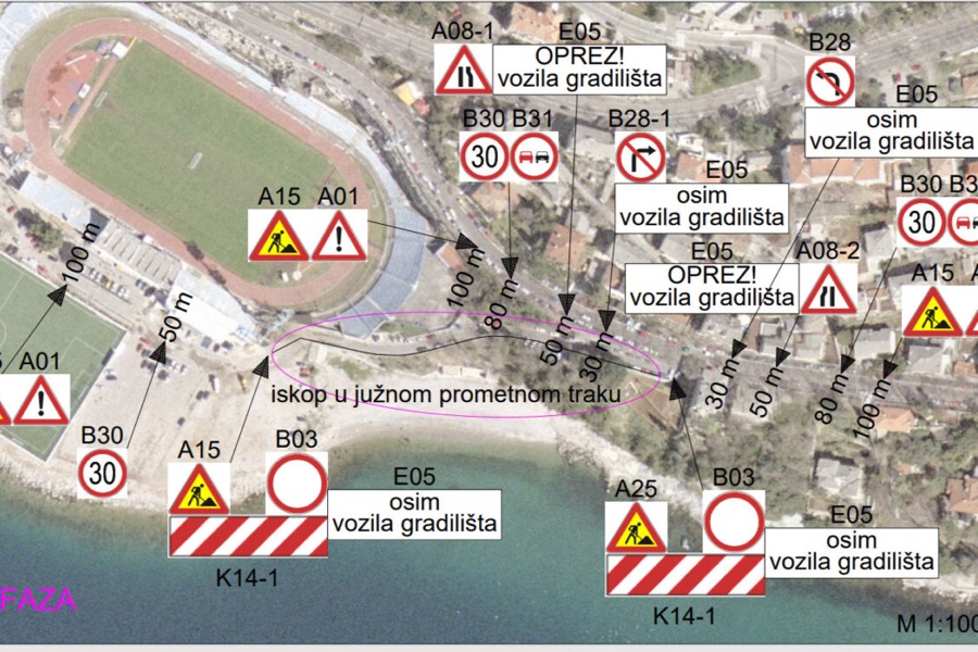 Prometni centar grada Rijeka obavještava javnost o radovima na izgradnji vodovodnog ogranka Portić, na području Ulice Portić od stadiona pa istočno do Pulske ulice u blizini kućnog broja 27.