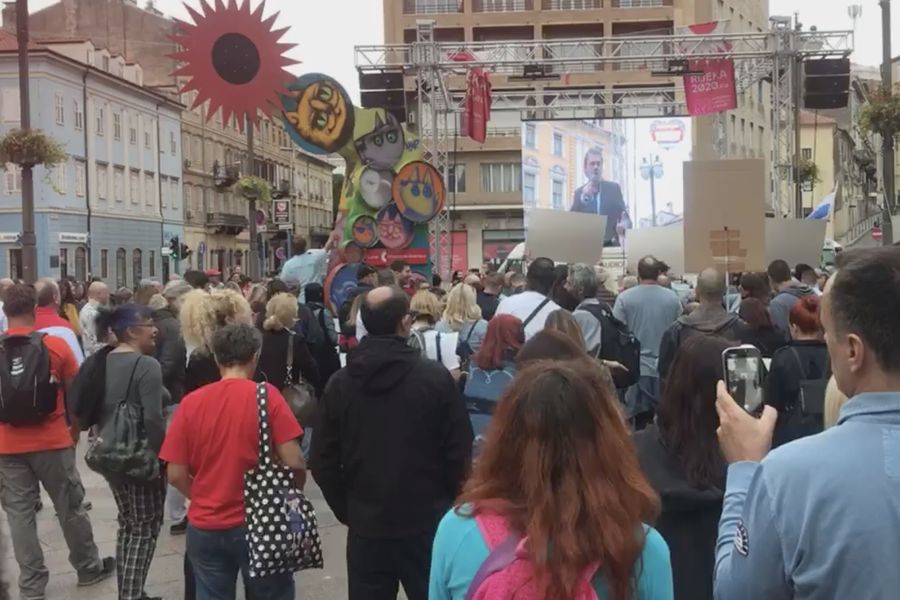 U Rijeci je nešto nakon 15 sati počeo prosvjed protiv mjera Nacionalnog stožera, koji kao i u Zagrebu, nosi ime Festival slobode.