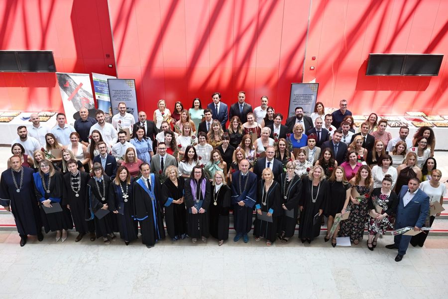 U ime v. d. rektora prof. dr. sc. Davora Vašičeka, doktorandice i doktorande promovirale su v. d. prorektorica prof. dr. sc. Sena Maćešić i prof. dr. sc. Marta Žuvić. Ukupno je promovirano 92 doktoranada – 58 doktorandica i 34 doktoranda.