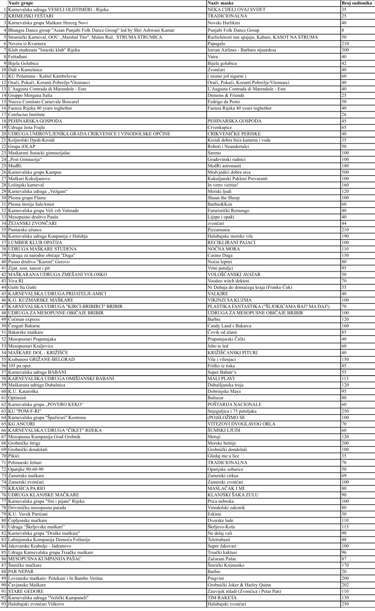 Velika karnevalska povorka u Rijeci nam se bliži, neke detalje ćemo doznati na sutrašnjoj najavnoj konferenciji za medije, ali već sad je poznato da će u povorci biti 93 grupe s približno 10.000 maškara.