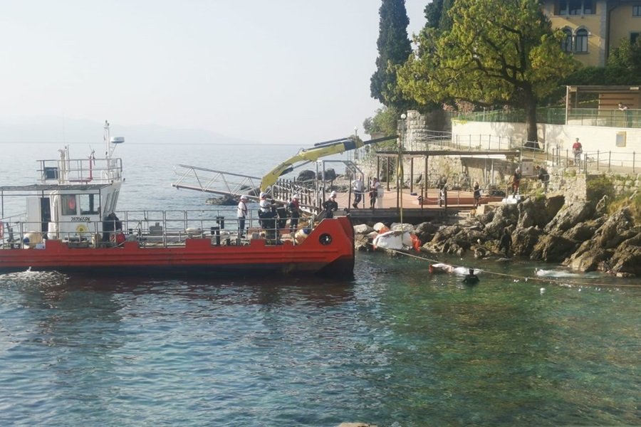 Prema dostupnim informacijama, stiroporno-čelični ponton iz mora je izvučen uz pomoć broda tvrtke Dezinsekcija iz Rijeke.