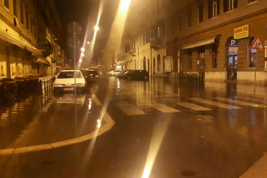 Najavljeno nevrijeme pod okriljem noći stvara sve više problema. Nakon što je i tijekom dana bilo poteškoća s poplavama u ulicama oko tržnice i na samoj riječkoj tržnici, tijekom večernji sati situacija je znatno gora.